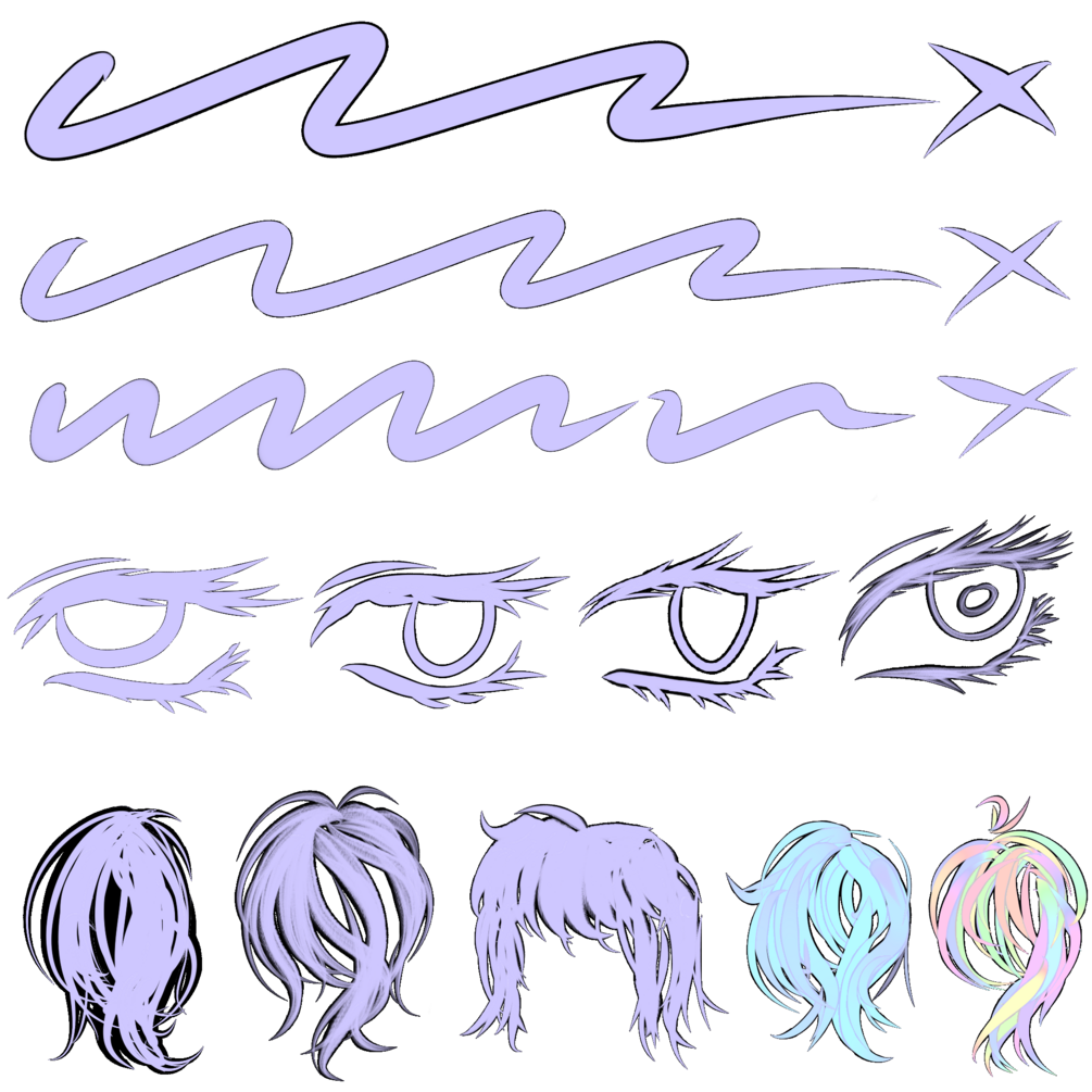 Mutiple variations of a CSP Style Outline Brush that doesn't overlap when you pick up your pen!* Useful for quickly blocking in hair, solid shapes etc.Â