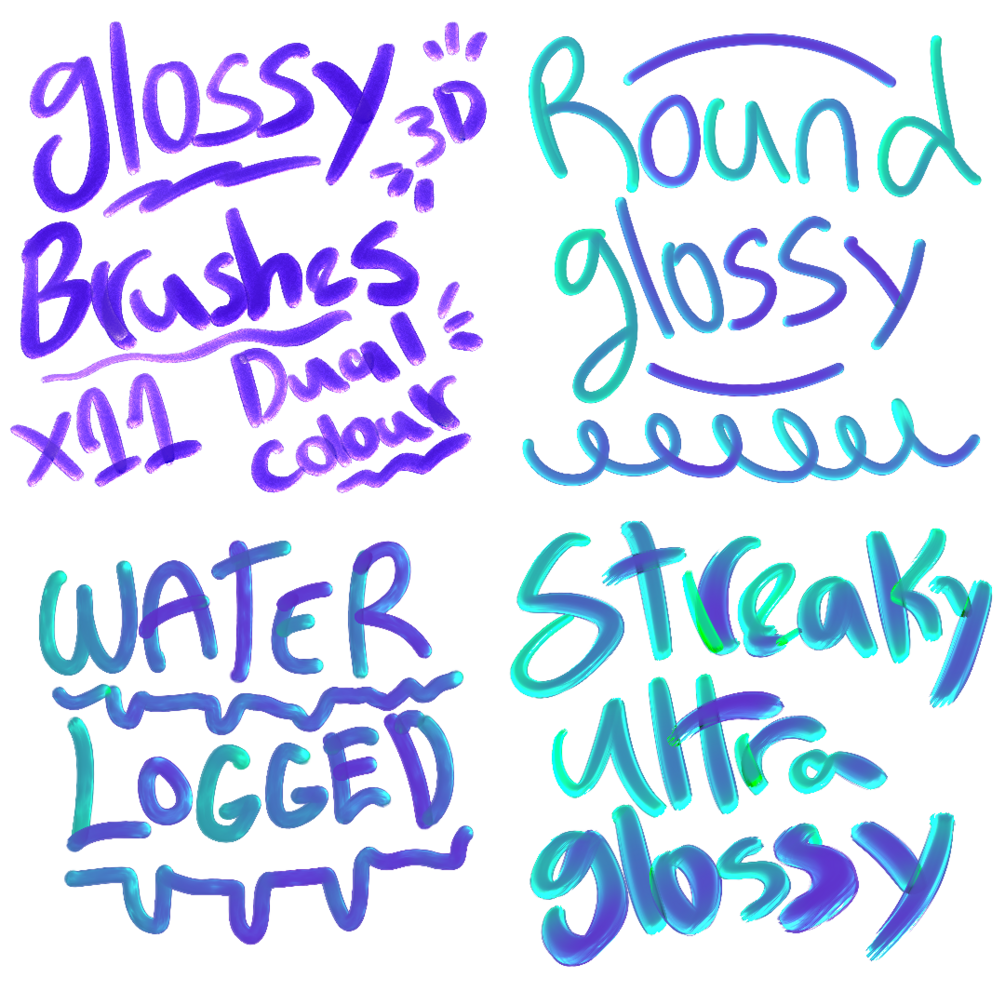 11 Glossy 3D Brushes for Procreate. Dual Colour & designed with lettering in mind.